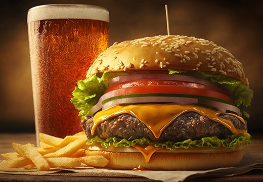- Alface, tomate, cebola, queijo cheddar, molho especial e pão com sésamo